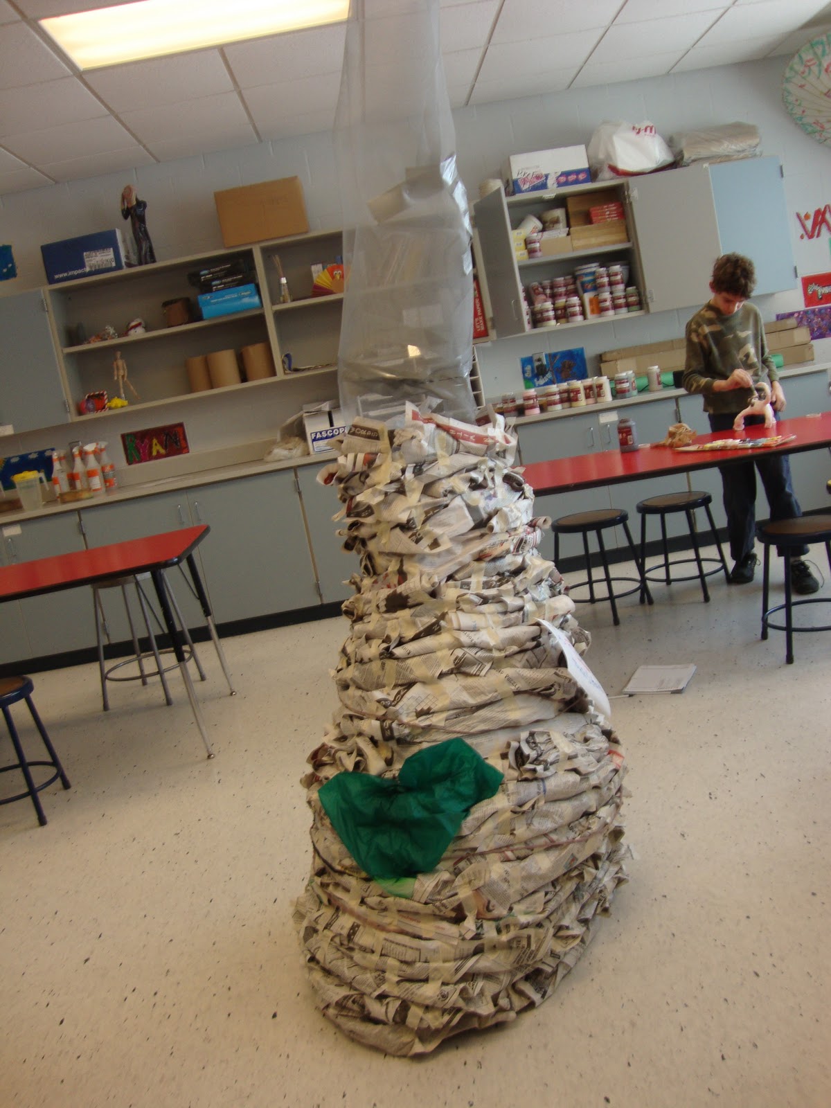 This lovely student is about 5' 5" (if not taller), so you can see how tall I was planning on making this thing because the ceilings towards the auditorium are higher than the ceiling in my classroom.