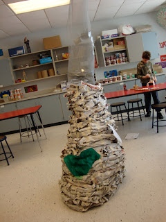 Again, it was way over their head what I was trying to "get out of them" and because this was the first time we ever put up an art show that goes along with the theme of our school play, the students didn't really get what the point of the project was. I'd have to admit, the creation of the tornado and watching it grow every day was a bigger hit.